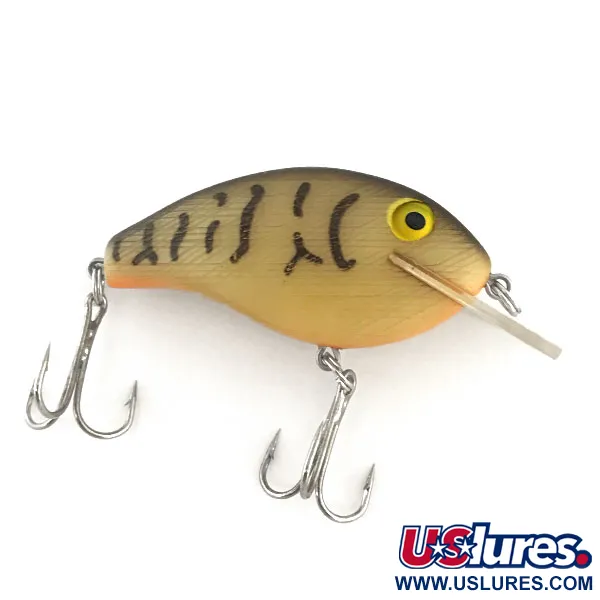 Pesant 10 g (1/3 oz) pour une taille de 5 cm (2"), ce Rebel Wee R arbore le coloris distinctif Brown Tiger, avec des barres verticales sombres sur un dégradé allant du beige à l'olive. Ce spécimen particulier, répertorié sous le code produit 8909, illustre le savoir-faire historique de la gamme Rebel fabriquée aux USA avec son corps propre et parfaitement conservé. Le leurre est doté d'une bavette transparente estampillée du logo de la marque, conçue pour atteindre des profondeurs comprises entre 0,4 et 1,2 m (1,3 - 4 ft). Classé 5/5 pour son état, le poisson-nageur conserve son éclat d'origine, notamment ses yeux jaune vif et sa transition ventrale orange chaud. Il est équipé de ses hameçons triples argentés d'origine, parfaits pour le lancer comme pour la traîne.
