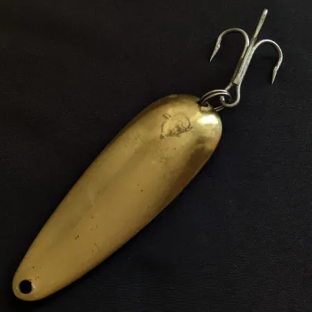 Un poids substantiel de 50 g (1 3/4 oz) fait de cette cuillère ondulante un excellent choix pour atteindre les carnassiers en profondeur ou pour lancer par vent fort. Ce modèle présente une finition classique en laiton et mesure 9 cm (3 1/2") de long. Le revers du leurre révèle les marquages frappés « DARDEVLE » et « DEARBORN MI », caractéristiques de la production d'Eppinger après son déménagement de Détroit en 1959. Sur la face convexe, un petit logo de poisson distinct est estampé dans le métal, apportant une touche de caractère vintage. Identifiée par le code produit 19731, la cuillère est montée avec un hameçon triple robuste aux tons argentés, fixé par un anneau brisé renforcé. Au vu de son état de 5/5, la surface en laiton conserve un bel éclat avec seulement de très légères traces d'ancienneté. Les matrices de fabrication exclusives utilisées par l'entreprise du Michigan confèrent à la cuillère son profil iconique en forme de goutte d'eau. Conçu pour le lancer ou la traîne, le leurre s'appuie sur sa construction en métal lourd pour maintenir sa profondeur lors d'une récupération constante.