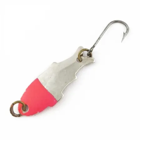 Une finition rouge vif recouvre la tête de cette cuillère de 1 g (1/32 oz), contrastant nettement avec son corps en nickel poli. Connue sous le nom de Triple Teazer et produite par Shoff's aux USA, ce leurre présente un profil de poisson distinctif gravé dans le métal. Mesurant 3 cm (1 1/4"), elle est équipée d'un hameçon simple orienté vers le haut et d'anneaux brisés de couleur laiton. Le code produit 24071 identifie ce modèle ultraléger spécifique, conçu à l'origine pour les présentations délicates nécessaires à la pêche de la truite ou des petits carnassiers. La surface en nickel réfléchissant est associée à une section rouge mat pour servir de signal visuel. Cet exemplaire particulier semble exceptionnellement bien entretenu, méritant une note de 5/5 pour sa finition intacte et ses accessoires propres. L'hameçon simple est fixé à l'arrière, tandis que l'anneau de tête offre un point d'attache solide pour les lignes fines.