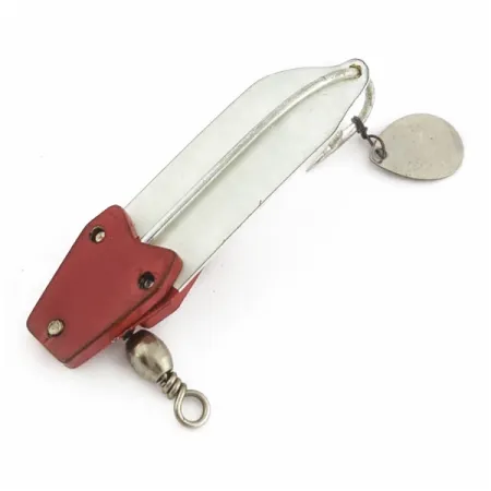 Le Trix-Oreno a été produit par South Bend dans les années 1940. Pesant 3/5 oz (17 g), ce modèle spécialisé présente une section de tête rouge distinctive fixée par trois vis sur un corps fuselé en métal blanc. Le châssis de 2 1/4" (6 cm) est conçu pour couler naturellement, imitant la descente d'un insecte dans la colonne d'eau, même sans récupération active. Les pêcheurs ciblant les truites postées en profondeur lors de températures extrêmes peuvent compter sur la façon dont le South Bend Trix-Oreno 595 plonge et tressaute sous l'action de légers coups de scion. L'arrière est équipé d'un hameçon simple et d'une petite palette métallique pour un attrait visuel accru. Pour augmenter le volume, la suggestion originale du fabricant consiste à fixer une petite lanière de couenne de porc à l'hameçon. Un émerillon baril robuste est intégré dans le montage rouge avant pour gérer la torsion de la ligne. Cet article spécifique, répertorié sous le code produit 24613, est dans un état irréprochable (5/5) avec une finition bien conservée sur la palette.