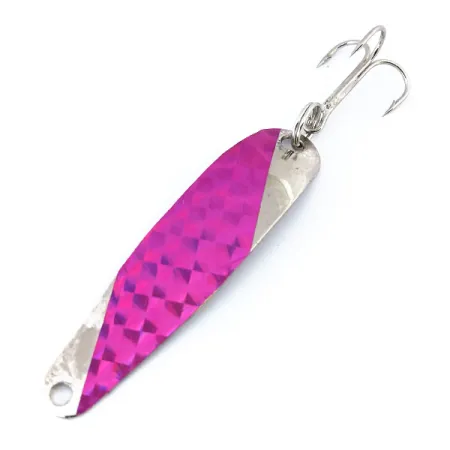 Captant la lumière grâce à un motif distinct en forme d'écailles, le ruban holographique violet recouvre la face de cette cuillère argentée. Le nom « STINGER » est clairement frappé sur le revers concave, marquant son origine en tant que création Advance Tackle des États-Unis. Pesant 5 g (3/16 oz) pour une longueur de 5,5 cm (2 1/4 pouces), le profil mince du leurre est conçu pour des applications polyvalentes en lancer et en traîne. La finition argentée et le revêtement violet réfléchissant sont en superbe état, comme en témoigne sa note de 5/5. Un hameçon triple d'origine, bien piquant, reste solidement fixé à l'arrière. Les collectionneurs reconnaîtront l'esthétique spécifique du code produit 10863, qui souligne l'accent mis par la marque sur les finitions à fort éclat pour une visibilité optimale en eaux claires.