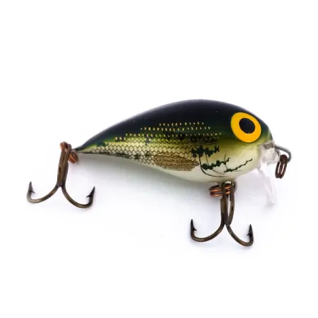 Pesant 5,5 g (3/16 oz), ce crankbait compact est un modèle classique de l'ère Storm avant le rachat par Rapala. Le coloris Baby Bass est magnifiquement préservé sur ce corps de 4 cm (1 1/2"), avec un dos olive foncé qui transitionne via un flanc aux écailles détaillées vers un ventre crème. Portant le code produit 10223, ce spécimen ultraléger est conçu pour les lancers en eaux peu profondes, évoluant entre 0 et 0,5 m de profondeur. Ses billes bruiteuses internes émettent une signature acoustique distincte lors de la récupération. Fabriqué aux USA, ce leurre possède les emblématiques yeux peints jaune et noir ainsi qu'une bavette transparente. L'état est noté 5/5, le vernis étant resté éclatant et l'armement d'origine parfaitement entretenu. Ce modèle spécifique illustre parfaitement le savoir-faire de Storm pour les zones encombrées et de faible profondeur.