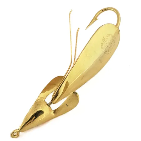 Brillant dans une riche finition dorée, cet exemplaire illustre l'ingénierie astucieuse que Johnnie O'Neil a apportée au monde de la pêche depuis Akron, Ohio, à partir de 1957. Mesurant 7 cm (2 3/4") et pesant 14 g (1/2 oz), la Weed Wing 3 est un élément marquant de l'histoire du matériel de pêche américain du milieu du siècle. Le corps en métal embouti présente la gravure distincte associée au brevet de 1962 d'O'Neil, un concept qui a finalement été vendu à Harrison Industries au milieu des années 1960. Pour naviguer dans les herbiers denses, le leurre est équipé de trois fins protège-hameçons en fil de fer qui protègent le grand hameçon simple intégré. Identifié par le code 11450, cet exemplaire reste en excellent état, noté 5/5, ses surfaces réfléchissantes et son armature étant parfaitement conservées. Sa fabrication souligne la transition de ce modèle, d'une petite invention de l'Ohio à un incontournable produit plus tard par Panther Martin.