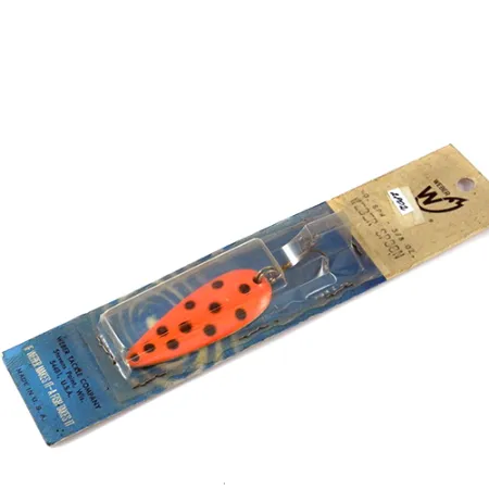 Un motif à pois rouge/noir permet d'identifier immédiatement cette Weber Spoon comme un classique du milieu du siècle de la Weber Tackle Company, basée à Stevens Point, Wisconsin. Pesant 11 g (2/5 oz) et mesurant 6 cm (2 1/4"), ce vestige de l'histoire américaine est répertorié sous le code 2802. Le leurre est resté inutilisé, fixé dans son emballage d'origine bleu et beige arborant le slogan « Weber Makes It—A Fish Takes It ». Bien que l'armement et la finition soient propres, l'emballage vintage présente de légères marques de stockage liées à son âge. Sa forme simple en goutte d'eau et son hameçon triple à l'arrière ont été conçus pour une polyvalence optimale au lancer comme à la traîne. Ce modèle discontinué constitue un lien tangible avec l'héritage de l'un des fabricants de matériel de pêche les plus renommés des États-Unis.