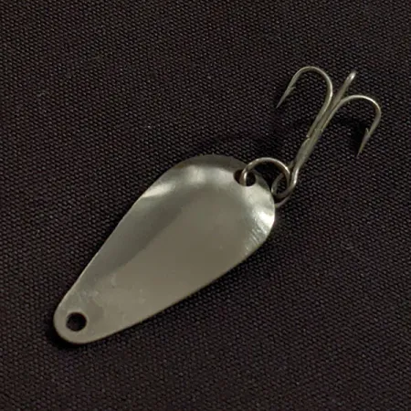 Pesant un délicat 1,7 g (1/16 oz), la Weller Gypsy King Deluxe est une cuillère ondulante compacte fabriquée aux États-Unis qui se distingue par sa conception classique en métal bicolore. Mesurant 2,7 cm (1") de long, son corps en forme de goutte d'eau présente une finition nickelée brillante sur la face convexe et une finition en cuivre chaud sur le revers. Ce spécimen, identifié par le code produit 22945, est dans un état exceptionnel de 5/5, conservant une surface propre et éclatante sur les deux faces métalliques. L'armement comprend un petit anneau brisé reliant un hameçon triple aux pointes acérées à l'extrémité large de la cuillère, tandis que l'extrémité étroite est pré-percée pour une fixation directe de la ligne. Ce leurre spécifique témoigne de l'industrie américaine des articles de pêche du milieu du siècle, conçu pour la pêche technique en finesse où le contraste entre les surfaces en cuivre et en nickel offre un profil visuel distinct.