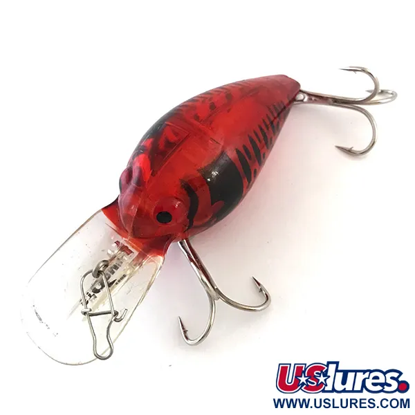 Doté d'une finition Red Perch translucide qui capture la lumière à travers son corps en plastique rouge profond, ce modèle fabriqué aux États-Unis représente un sommet de la production vintage de crankbaits. Pesant 12 g (2/5 oz) pour une longueur de 5 cm (2"), le Wiggle Wart porte le code produit 5418 du catalogue Storm. Sa bavette transparente surdimensionnée, frappée du logo classique Storm, est conçue pour faire descendre le leurre dans une zone de 2 m à 5,5 m (6,5 ft - 18 ft), idéale pour la traîne ou le lancer profond. Dans cet état 5/5, les zébrures verticales noires de perche et les fines mouchetures sur le dos restent nettes et bien définies. Des chambres de billes internes assurent une présence sonore pour cibler le saumon, le doré jaune ou le brochet. L'armement d'origine est intact, avec une configuration de deux hameçons triples et un anneau brisé d'usine sur l'attache.