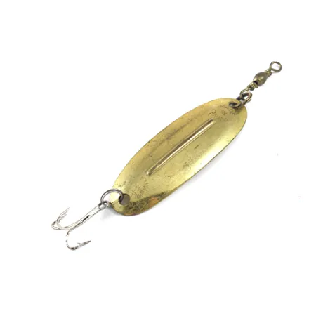 Mesurant 5,5 cm (2 1/4"), cette cuillère ondulante en finition laiton représente l'héritage durable d'un design produit pour la première fois en série dans les années 1920. Pesant 8 g (1/4 oz), cette Williams Wabler, portant la référence #1235, repose sur le savoir-faire canadien, signature de la marque depuis que la production a été entièrement transférée au Canada en 1978. Sa caractéristique physique la plus distinctive est l'arête longitudinale surélevée au centre du corps ovale, un ajout technique conçu pour maintenir la stabilité à différentes vitesses de récupération. Ce modèle particulier est classé 4/5, présentant des surfaces propres et l'armement d'origine, incluant l'hameçon triple monté à l'arrière et un émerillon baril fixé par un anneau brisé en tête. Historiquement utilisée pour le brochet et le doré, cette cuillère au corps en métal embouti est synonyme du patrimoine de Williams.