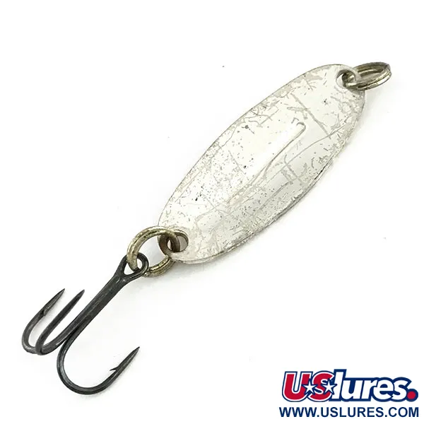 Mesurant exactement 4 cm (1 1/2"), le corps en laiton estampé de ce classique fabriqué au Canada présente l'arête longitudinale emblématique qui définit la série Williams Wabler. Ce modèle W30 spécifique, identifié par le code produit 9117, arbore une finition argentée et pèse un léger 4 g (1/8 oz). Bien que le placage d'argent présente un réseau de fines rayures de surface provenant de sorties précédentes, il conserve une solide note d'état de 3/5, affichant le caractère d'un leurre qui a passé beaucoup de temps au bout de la ligne. L'armement reste fonctionnel, avec un jeu d'anneaux brisés d'origine et un hameçon triple robuste conçu pour faire face aux brochets et sandres agressifs. La nervure de stabilisation distincte est parfaitement formée pour maintenir la nage de la cuillère droite, quelle que soit la vitesse de récupération.