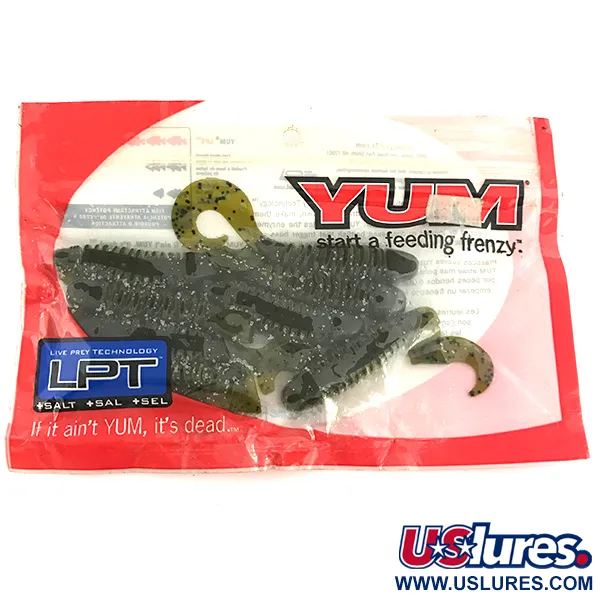 Le plastique imprégné de sel 'Green Pumpkin' confère à ces leurres de 10 cm une texture dense et naturelle qui résiste parfaitement aux techniques de jigging. Fabriqués aux États-Unis sous la référence 6893, ces leurres souples arborent un corps profondément annelé conçu pour déplacer l'eau et maximiser la surface de rétention de l'attractant. L'emballage d'origine rouge et blanc contient huit unités à l'état neuf. En observant la forme, la large queue en virgule associée à un corps annelé massif crée un profil classique pour le bottom-bouncing ou la nage à travers les obstacles. Le marquage LPT (Live Prey Technology) sur le sachet indique l'inclusion d'attractants spécialisés propres aux plastiques de qualité professionnelle YUM. Ce coloris Green Pumpkin moucheté de points noirs offre une présentation naturelle fiable pour une grande variété de poissons d'eau douce.