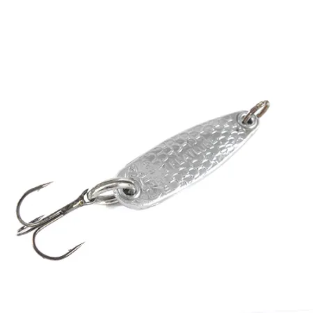 Doté d'un motif d'écailles distinctif estampé sur son corps métallique, ce Zip Flatlure de 44g est un leurre robuste fabriqué aux États-Unis pour le jigging vertical. Mesurant 6 cm de long, le leurre présente une finition argentée polie qui souligne sa surface texturée. Les inscriptions gravées « FLATLURE » et « TRADE MARK » restent nettes sur le flanc, identifiant ce modèle américain sous le code produit 1694. Ce spécimen est en état 5/5, avec une surface brillante et des accessoires bien conservés, y compris les anneaux brisés d'origine. Un hameçon triple unique est fixé à la queue, conçu pour le jigging en eaux profondes ou les lancers à longue distance.