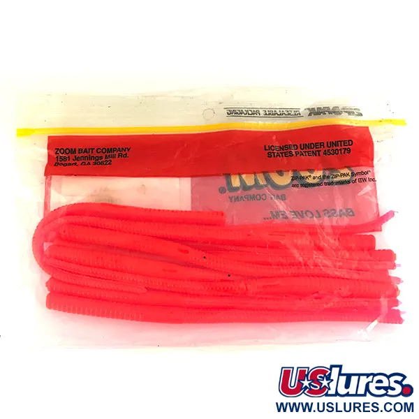 Mesurant 15 cm (6"), ces vers en plastique souple présentent le profil finesse classique qui a permis à la Zoom Bait Company de devenir un incontournable des boîtes à pêche. Le coloris haute visibilité Merthiolate est une nuance néon spécialisée, fréquemment utilisée pour la pêche à vue sur les nids ou dans les eaux chargées où le suivi visuel est essentiel. Dans le cadre de la série Super Salt Plus, le matériau est fortement imprégné de sel, un choix de conception destiné à influencer la flottabilité et la texture du leurre. Ce sachet, identifié par le code 6838, contient 12 spécimens neufs qui conservent leur souplesse d'origine et leur pigmentation vibrante. Fabriqué aux USA, ce leurre possède un corps annelé distinctif qui s'affine vers la queue, parfaitement adapté aux montages sur hameçons fins comme le shaky head ou un montage weightless. Ces leurres sont à l'état neuf.